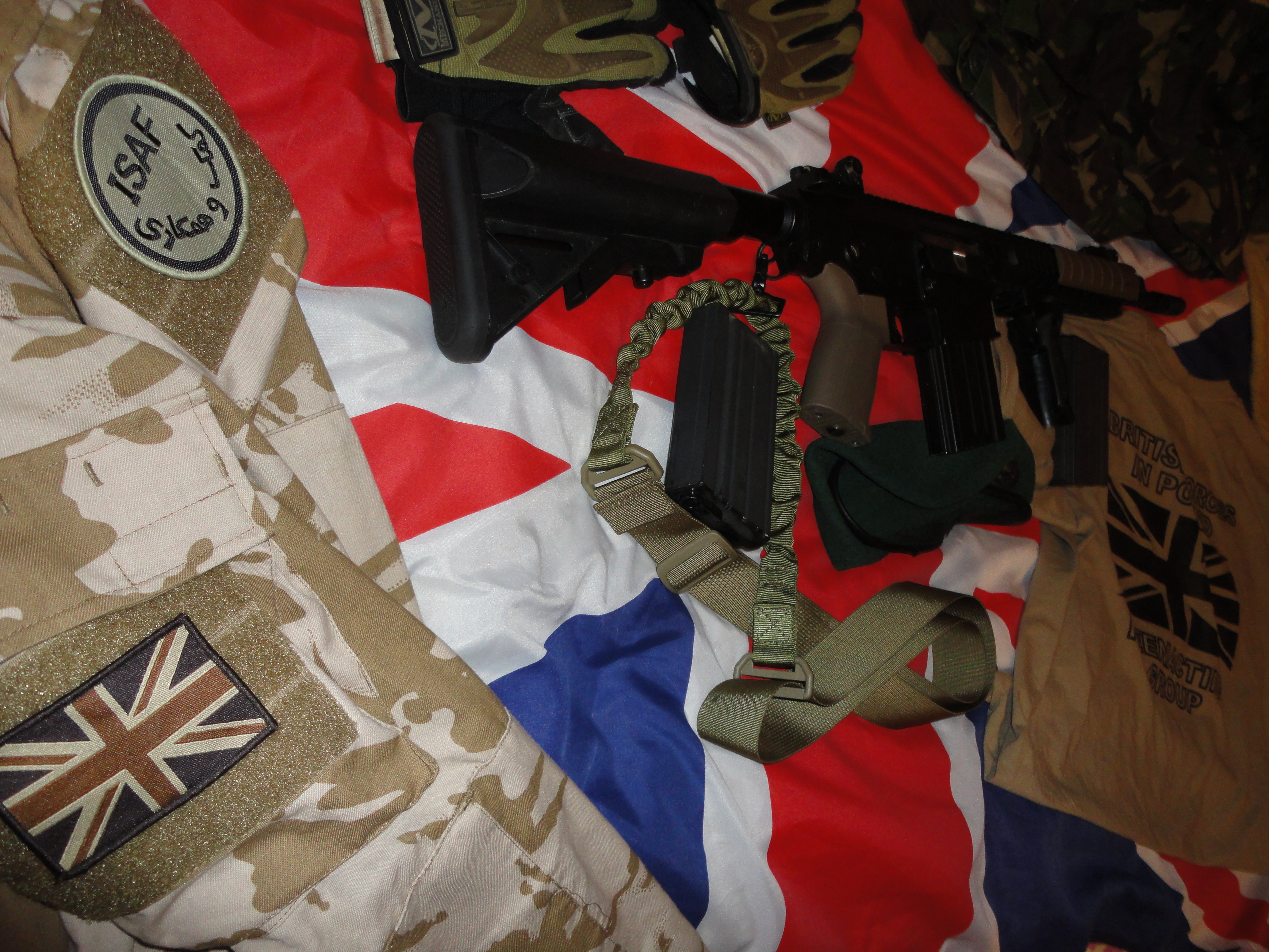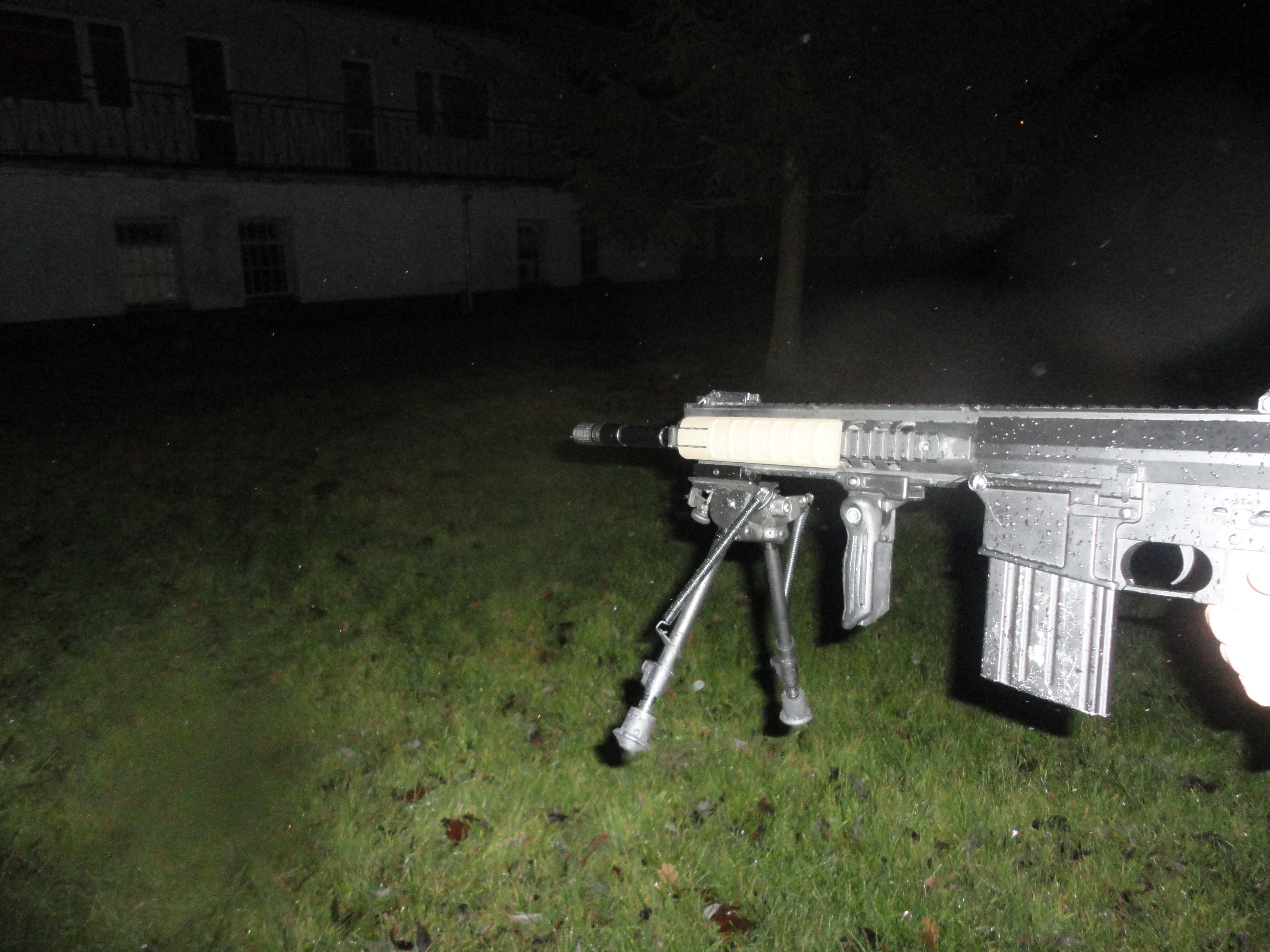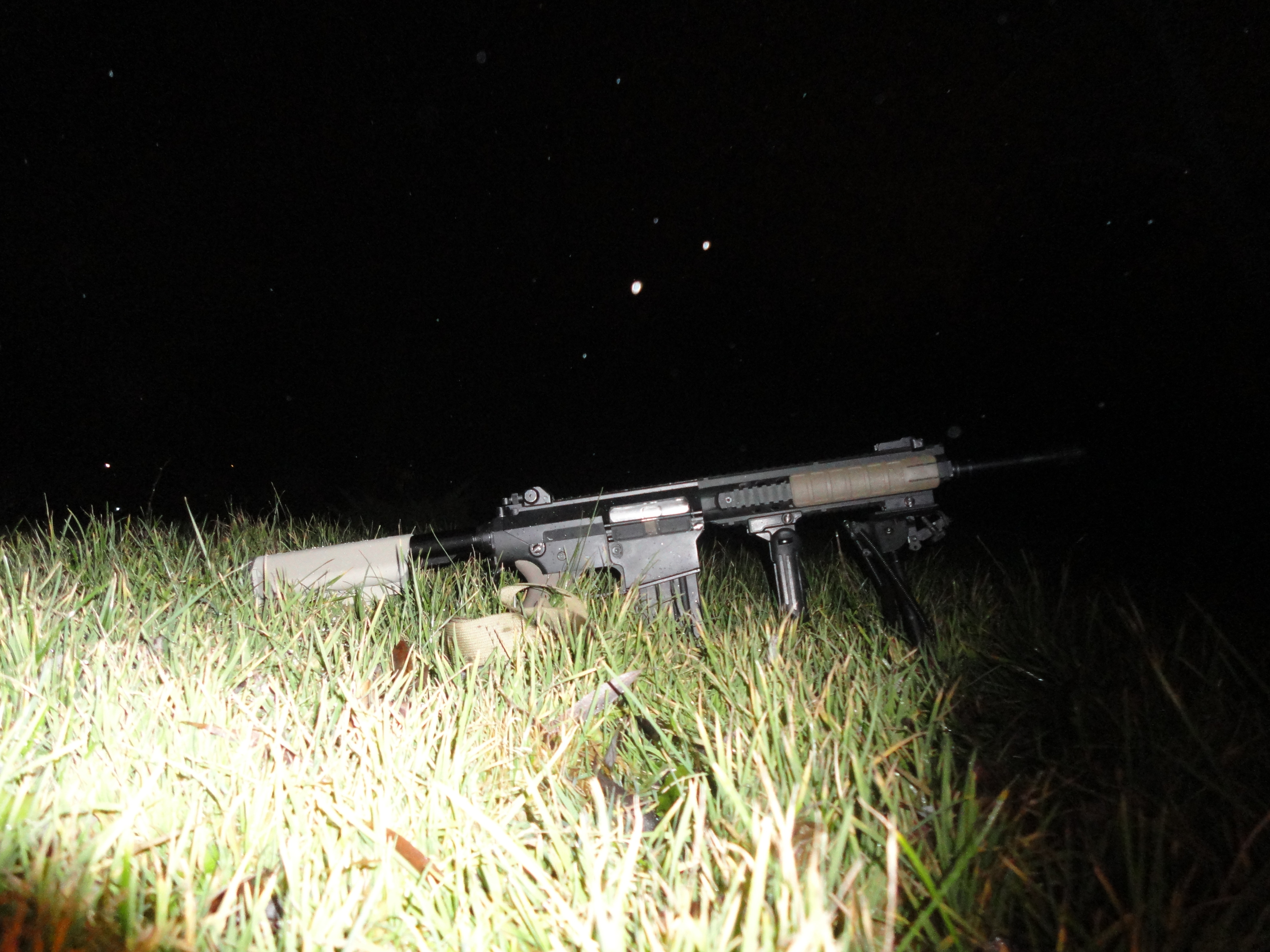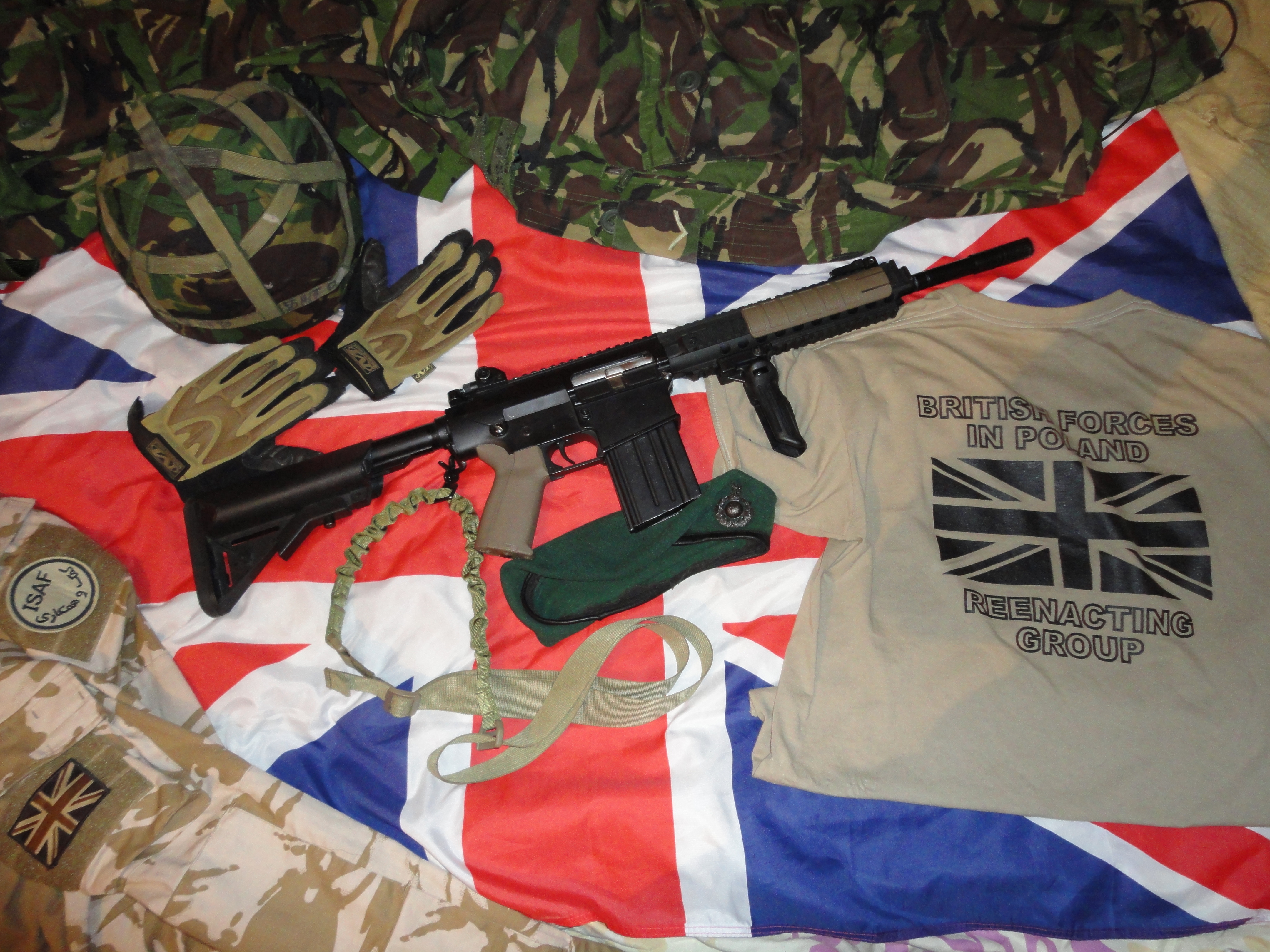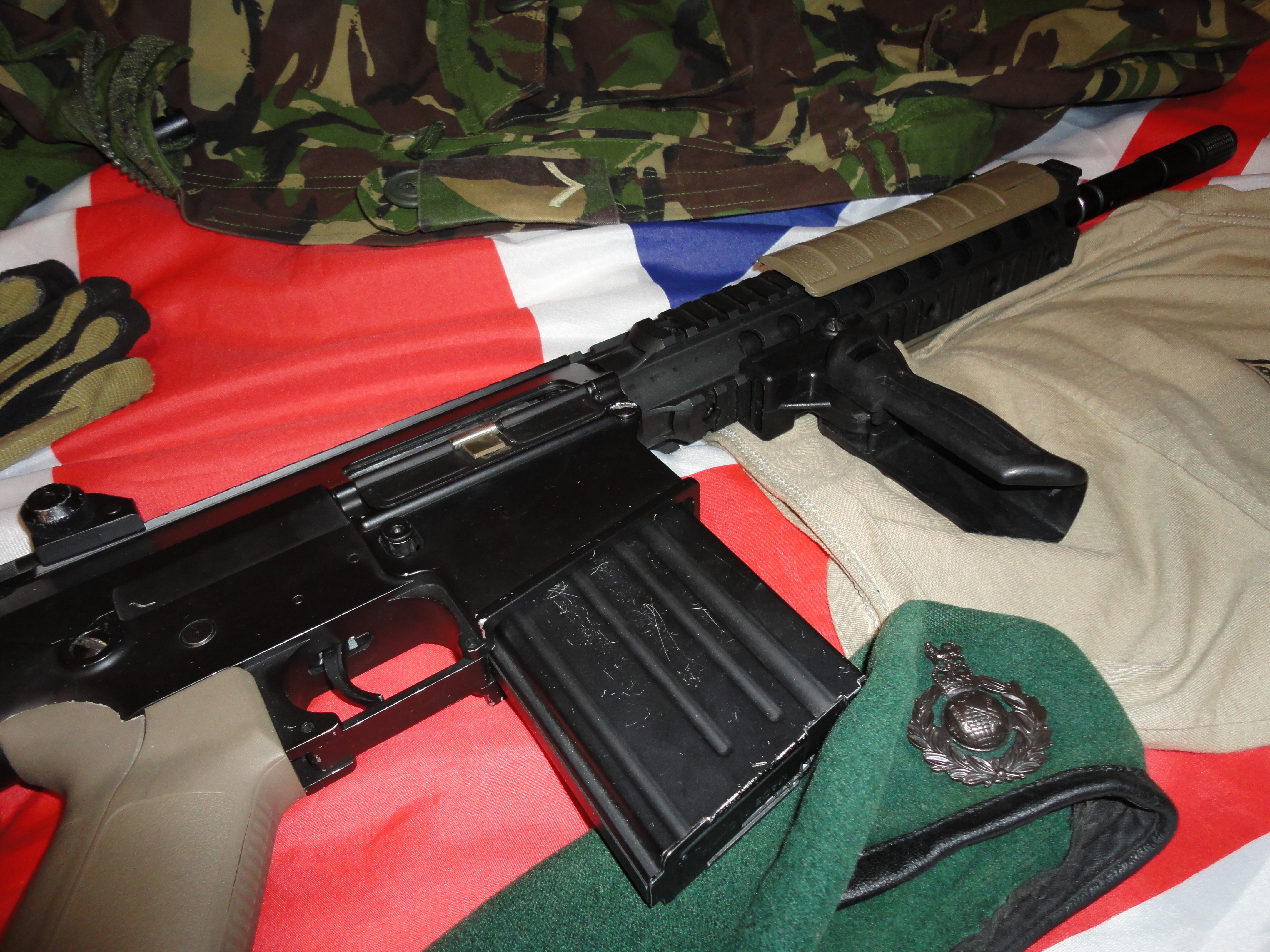 Poczynione zmiany: zamontowana kolba sf (odpowiedni kolor zostanie zaaplikowany w przyszłą sobotę), składany chwyt, chwyt pistoletowy (powinien być ergo, ale póki co jest nieco za drogi), okładziny na risie, dodatkowo zdjęty został orisowany element, który jest montowany przed szyną ris zamiast muszki. Zawieszenie 1pkt flyee.