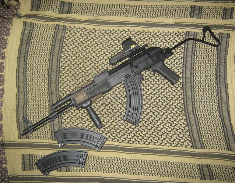 Pierwotnie zakupiony był jako AK-74NM jednak nadarzyła się okazja na wymianę kolby na ramową i tak też uczyniłem.
